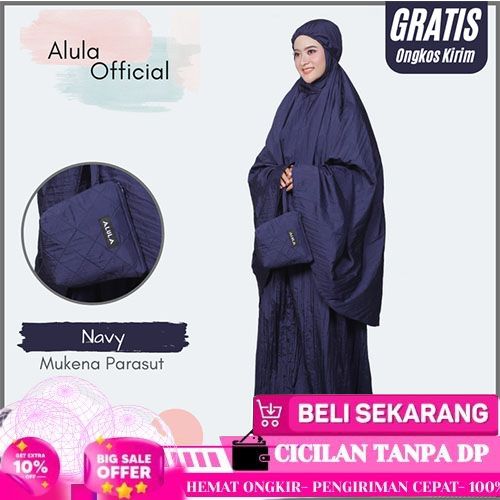 IBADAH MUKENA TRAVELLING POLOS ALULA DEWASA JUMBO BAHAN PARASUT PREMIUM - SILVER GOLD