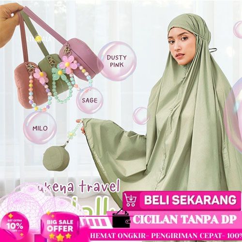 IBADAH MUKENA TRAVEL MINILOLLY 2IN1 POUCH PARASUT KOREA PREMIUM DEWASA RESLETING - LATTE
