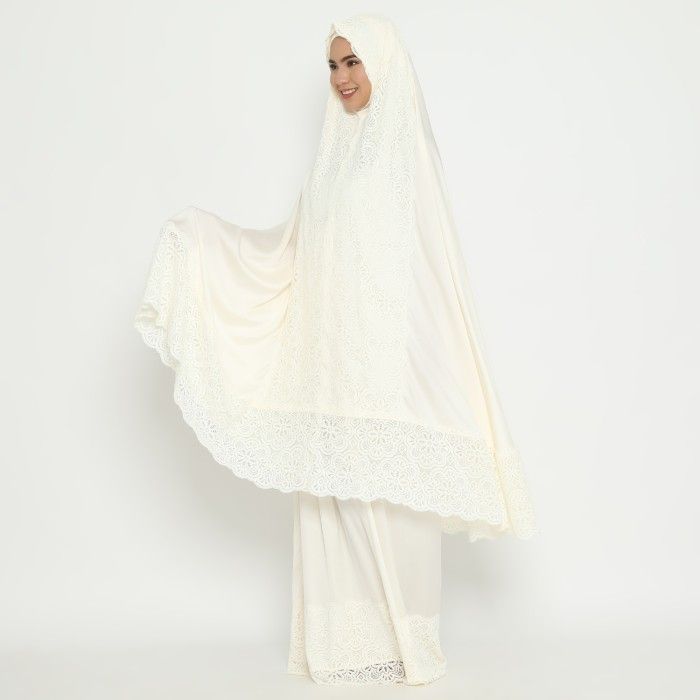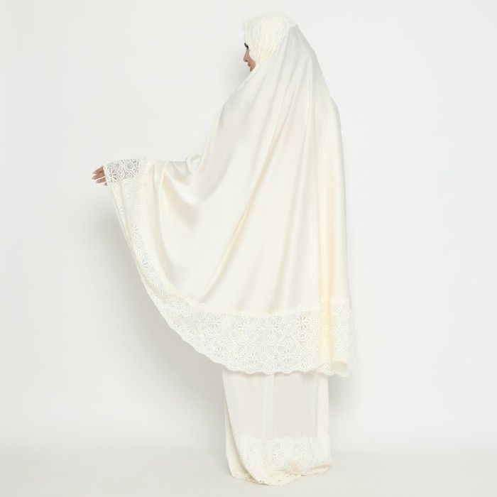 IBADAH EIZA BY DUAPOLA MUKENA SILK LACE 7202 - BROKEN WHITE - CLASSIC