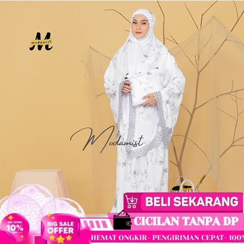 IBADAH MUKENA DEWASA PUTIH FULL BORDIR RENDA PREMIUM - BORDIR-MILO, DEWASA