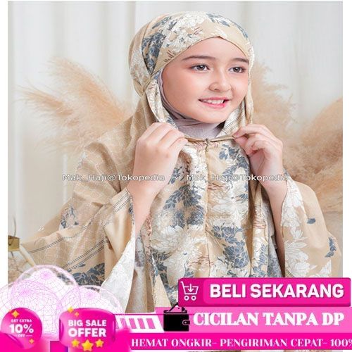 IBADAH MAK.HAJI MUKENA ANAK TANGGUNG AZURA HASYA 2IN1 RESLETING TRAVEL KATUN MOTIF - CREAM RASYA
