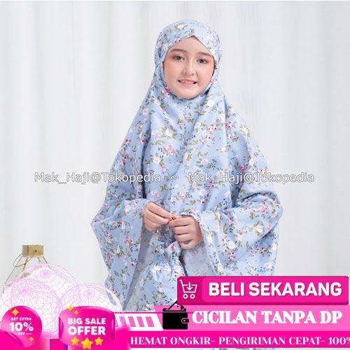 IBADAH MAK_HAJI MUKENA ANAK RASYA TRAVELING 2 IN 1 KATUN MOTIF CANTIK - HIJAU