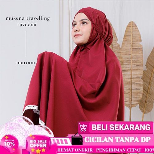 IBADAH MUKENA DEWASA TRAVELLING KATUN RAVEENA PUTIH TRAVEL POLOS ARUNA ANZELL - ROYAL ROSE