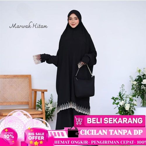 IBADAH PREMIUM MUKENA IHROM HAJI UMROH CRINCLE POTONGAN BERLENGAN RENDA BORDIR - PUTIH