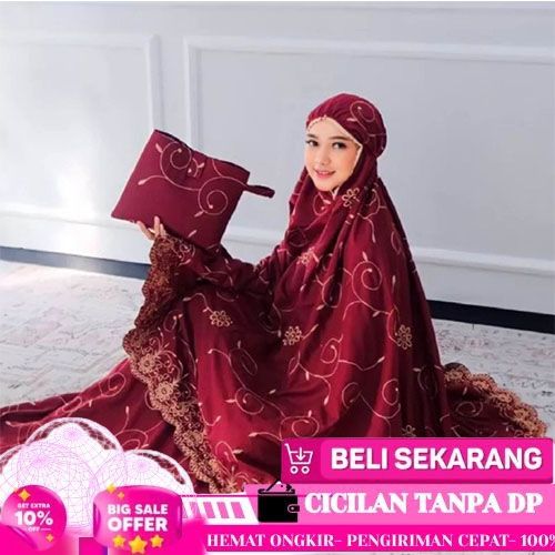 IBADAH MUKENA DEWASA GRACELLA FULL BORDIR , ATASAN SAMA BAWAHAN FULL BORDIR - MAROON, BORDIR