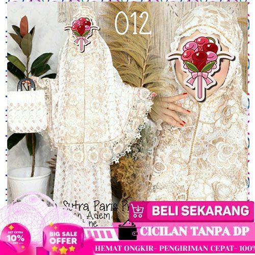 IBADAH MUKENAH SUTRA PARIS RENDA MAWAR SWAROVSKI(MEWAH.ELEGANT)+TAS - MELATI TWOTONE