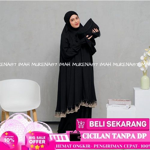 IBADAH MUKENA UMROH HAJI RAYON TWILL PREMIUM BERDAGU RENDA TULLEU MEWAH MUKENAH STELAN BERLENGAN JUMBO CANTIK - PUTIH