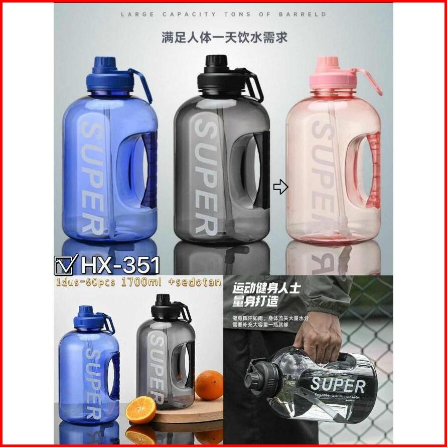 Lrms Botol Minum Sport Super 1700ml Botol Gym Besar Jumbo Bening Trans - Black