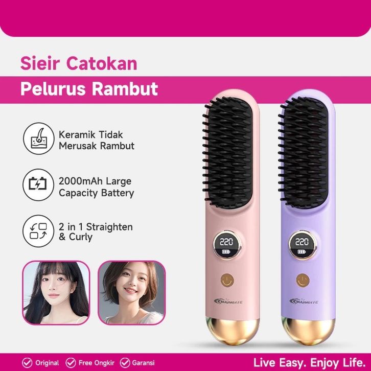 MAIMEITE CATOK SISIR PELURUS RAMBUT / CATOKAN SISIR LURUS DAN KERITING LISTRIK / HAIR STRAIGHTENER CURLER 2 IN 1