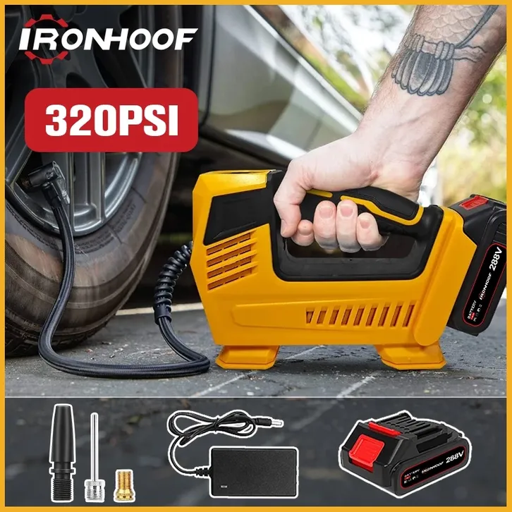 IRONHOOF 288V Portable Pompa Ban Mobil Truk Motor Elektrik Cek Tekanan Angin Digital LCD Display
