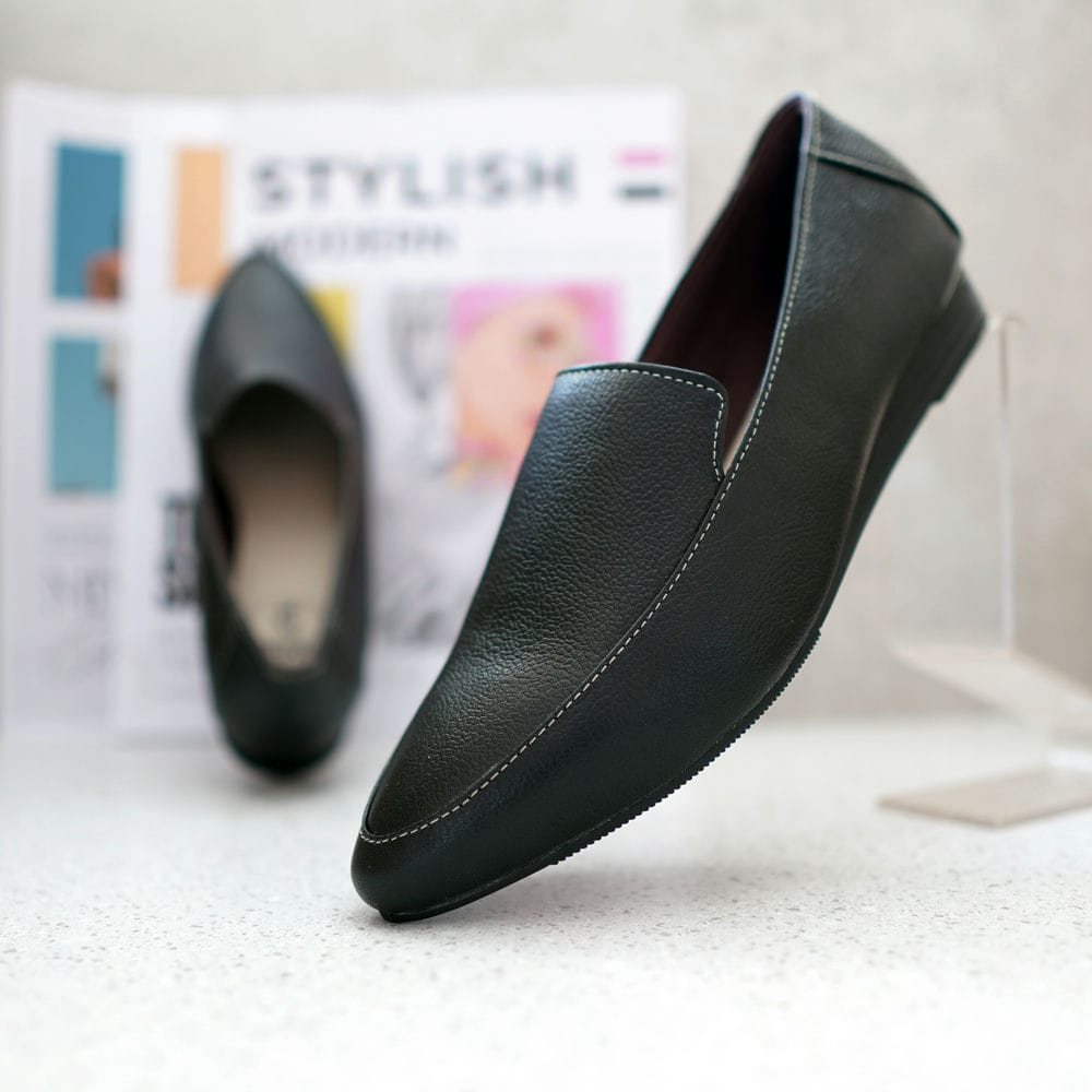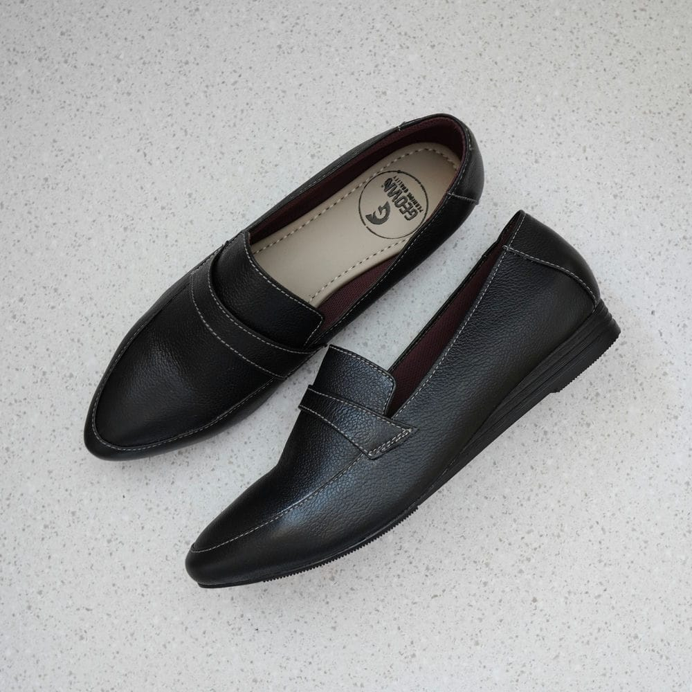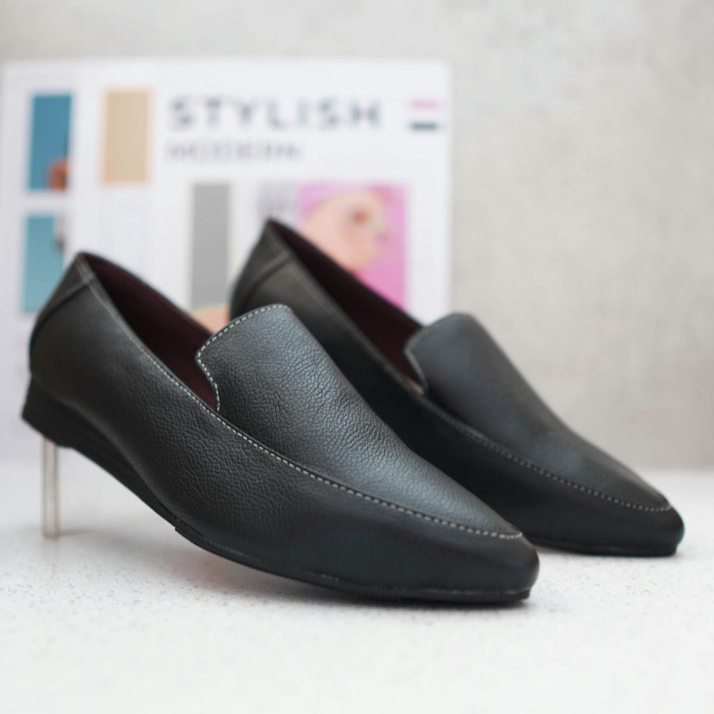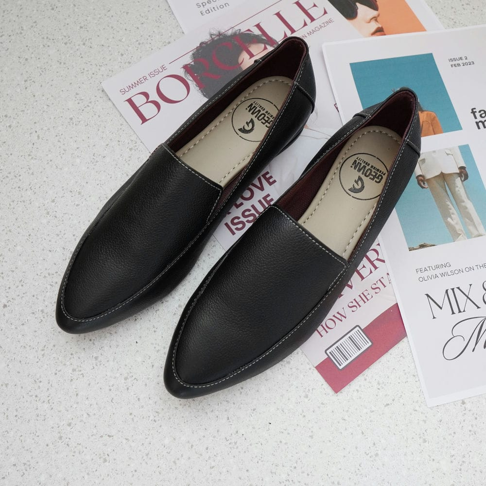 Cevany Sepatu Flat Shoes Wanita Kulit Hitam Charlotte
