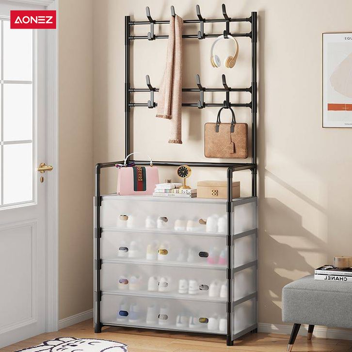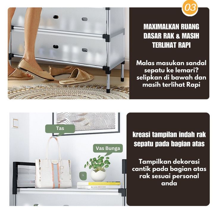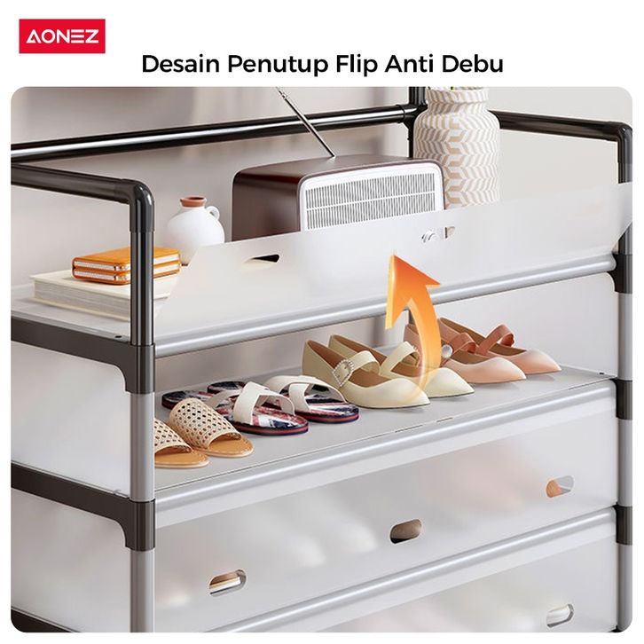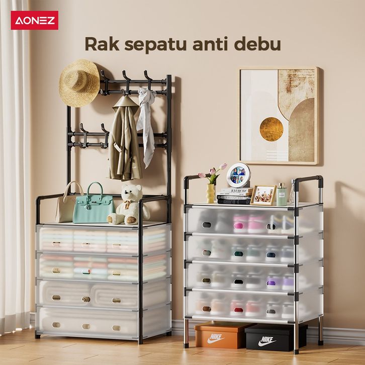 Rak Sepatu Tertutup Anti Debu 5/6 Lapis Rak Serbaguna 2in1 Gantungan Baju Tas Stand Hanger Model Sekarang Kekinian