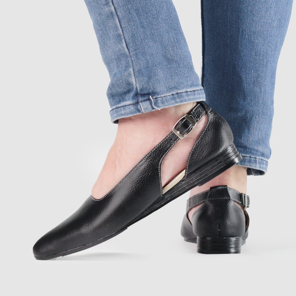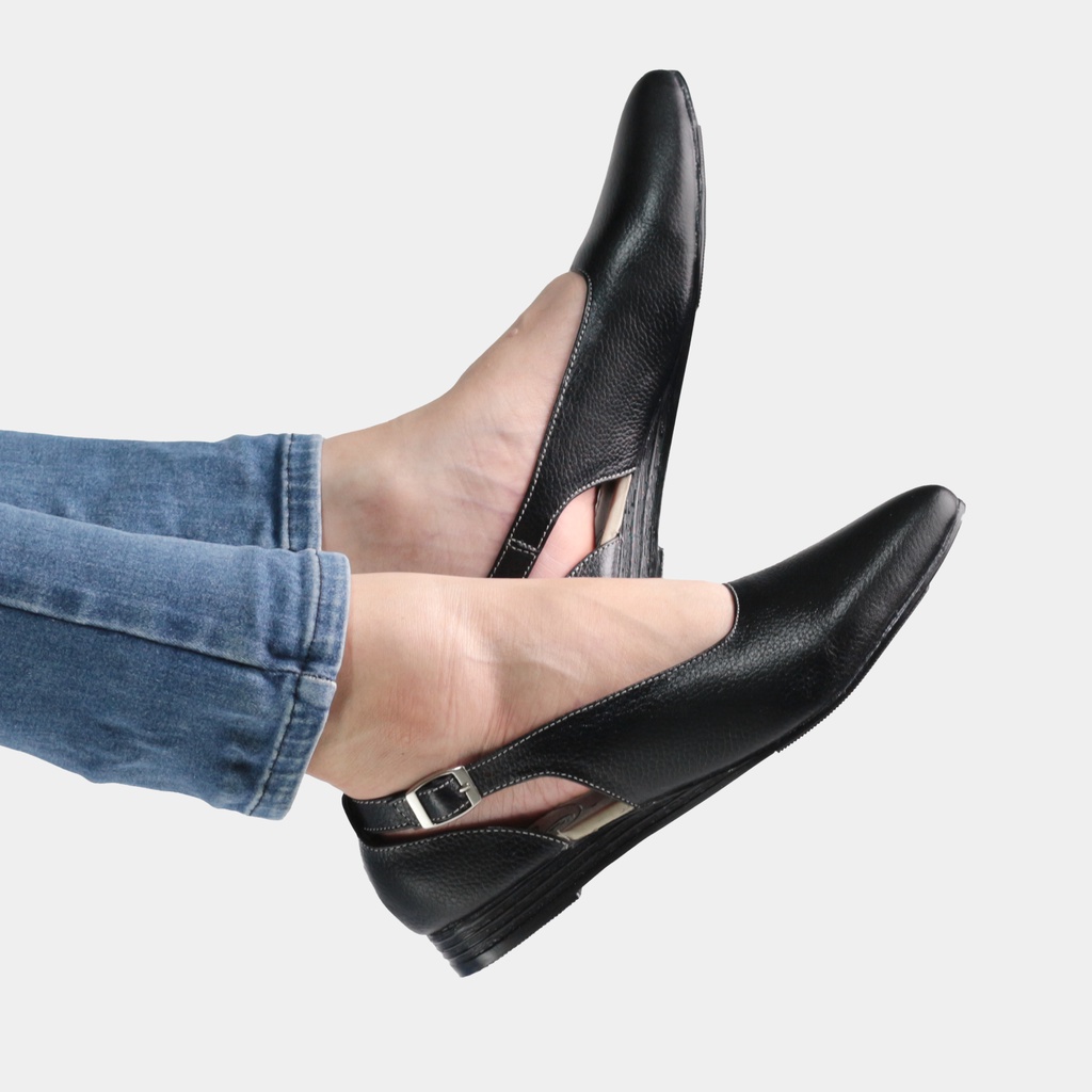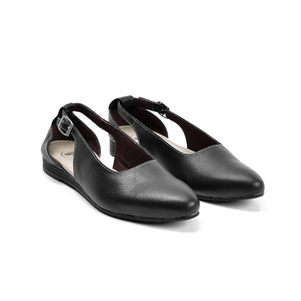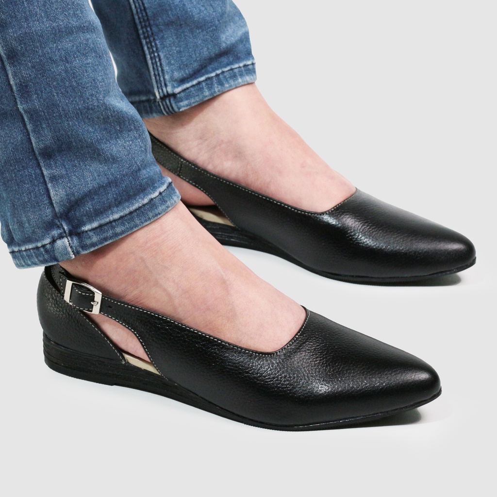Cevany Sepatu Kerja Wanita Flat Formal Kulit Asli Geovani S Audrey - Hitam