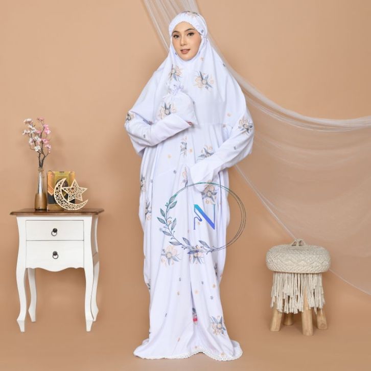 BY NADEERA MUKENA-Mukena Terusan Dewasa Katun Bordir Bunga Serangkai Mukena Langsungan Dewasa