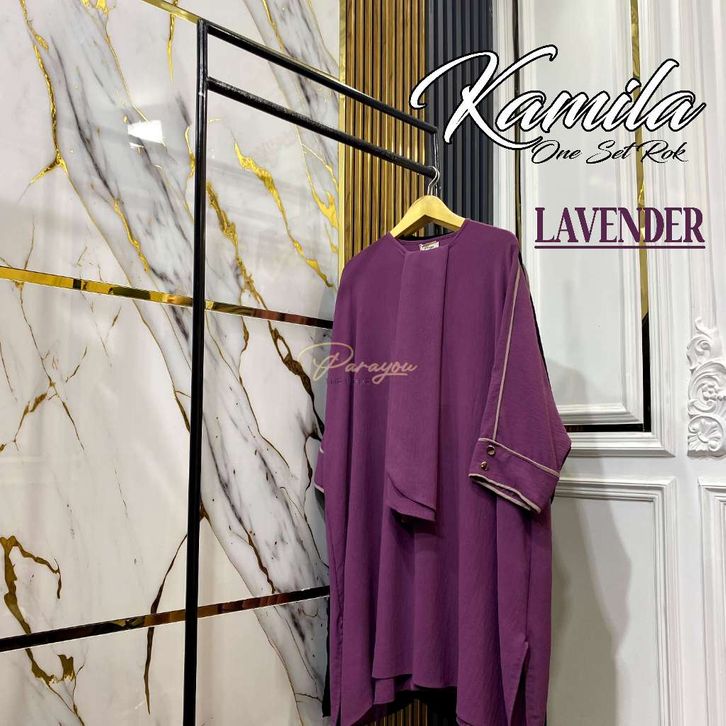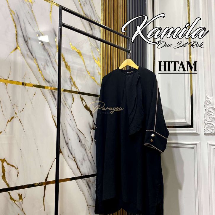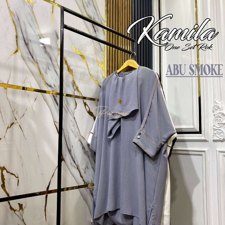 Kamila One Set hijab + kaftan + rok Setelan Gamis Panjang Umroh, Kajian, Seragaman Wanita Muslimah Syar'i Crinkle