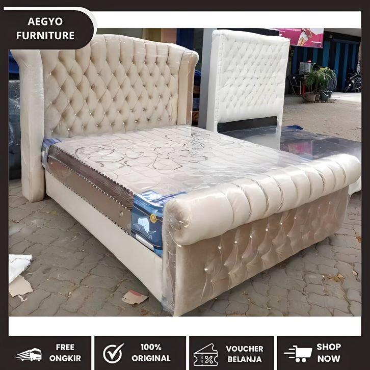 Dipan Kasur 180x200 Murah Series Kipas Double Sandaran Bahan Oscar Tanpa Kasur Tanpa Laci