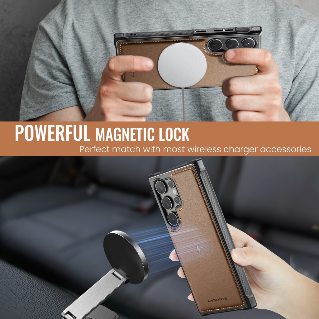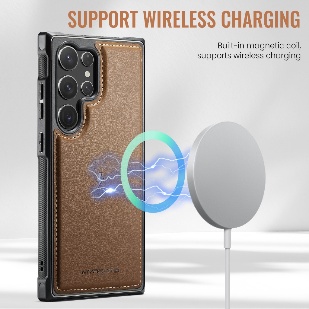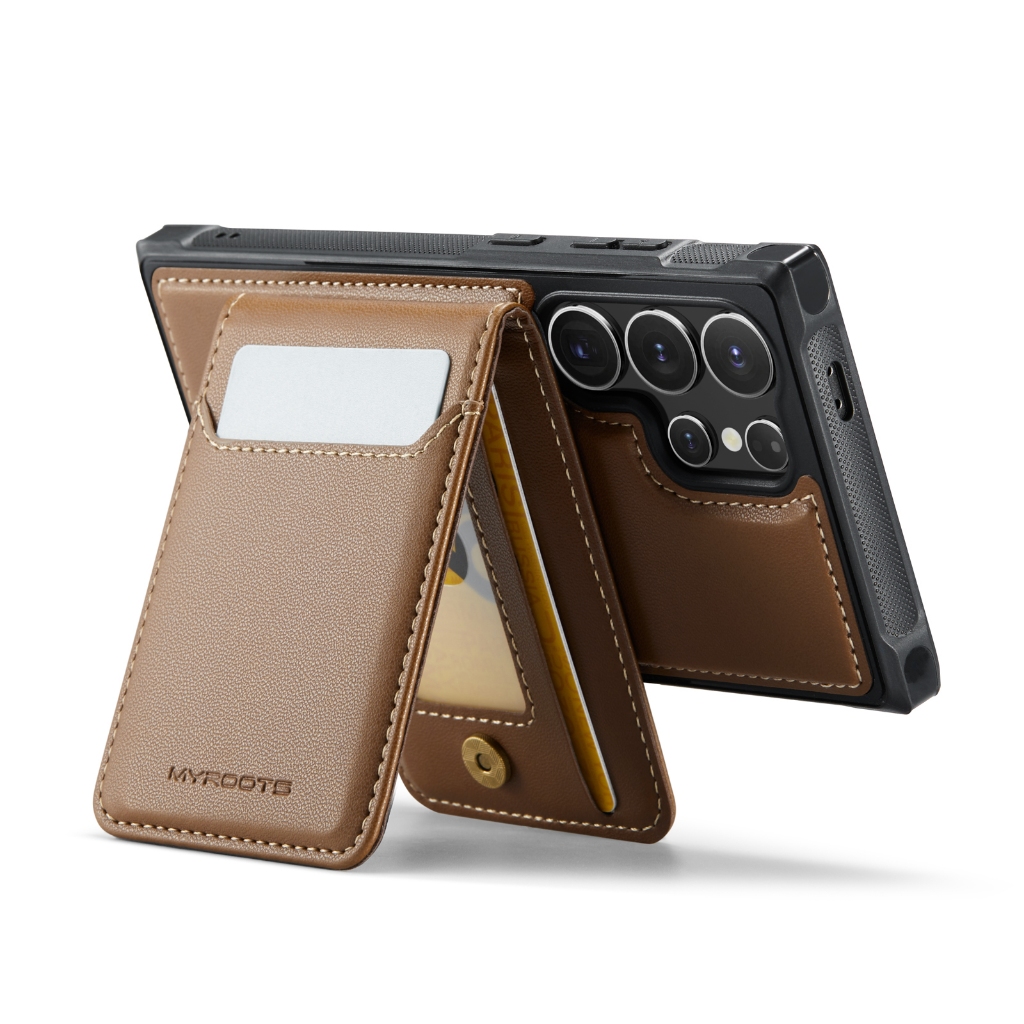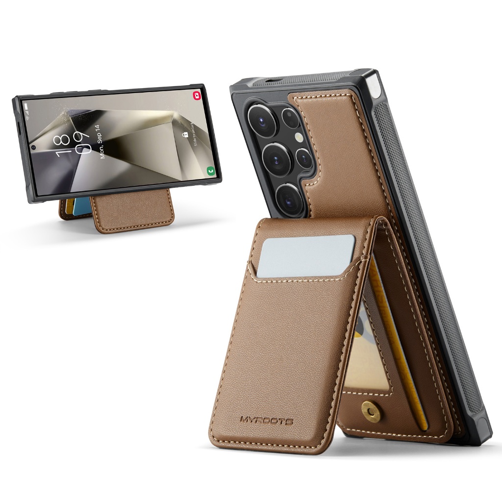 Myroots Mini Wallet Case Samsung S25 S24 S23 FE Ultra Plus Leather Casing RFID Holder Magnetic Card Standng