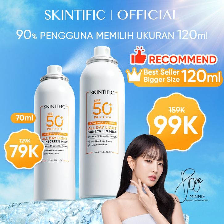 Sunscreen Mist SKINTIFIC - All Day SPF 50 PA++++ 120ml | Sunscreen Spray UV Mist Tone Up Sun Shield Sunscreen Sunblock