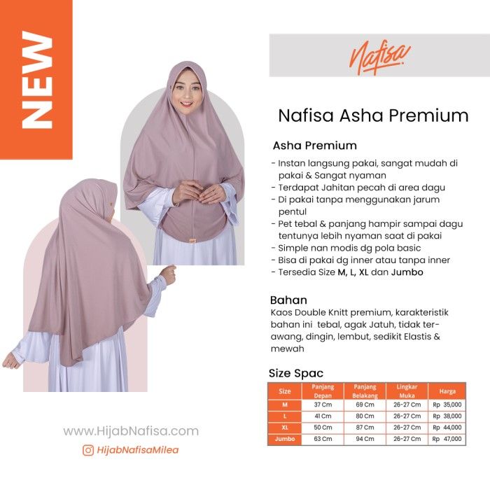 Nafisa Asha Premium Jumbo | Hijab Instan Syari Jumbo Kaos Premium