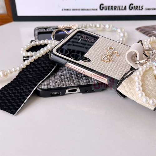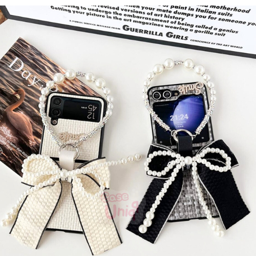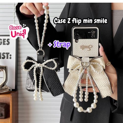 CASEUNIQQ Case Z flip 3 4 5 6 + Strap Min Smile White Black Casing HP Lipat Samsung Monochrome