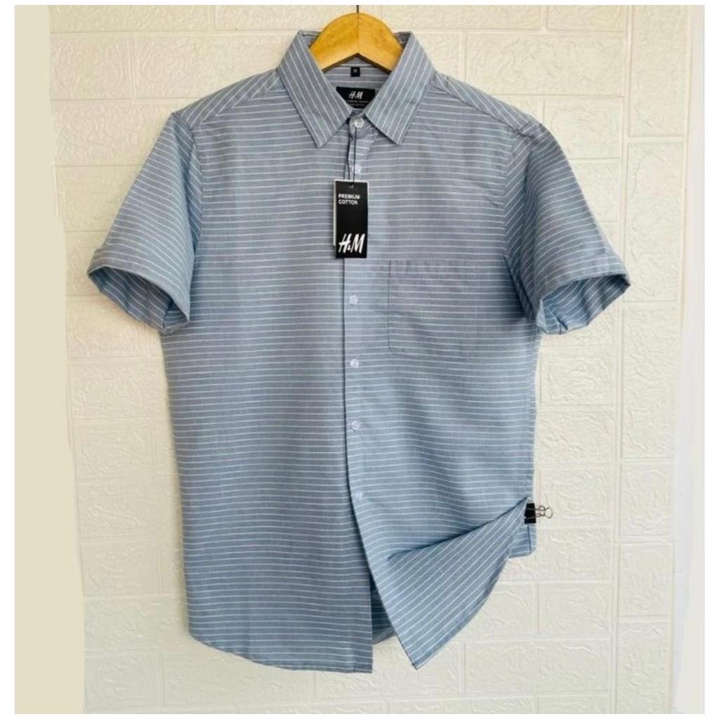 KEMEJA SALUR STRIPE HM PRIA LENGAN PENDEK | KEMEJA KERAH CASUAL PRIA | KEMEJA CATTON SLIM PRIA | KEMEJA MOTIF TERBARU PRIA