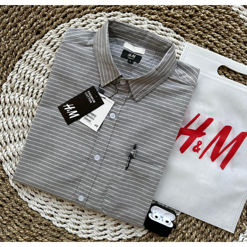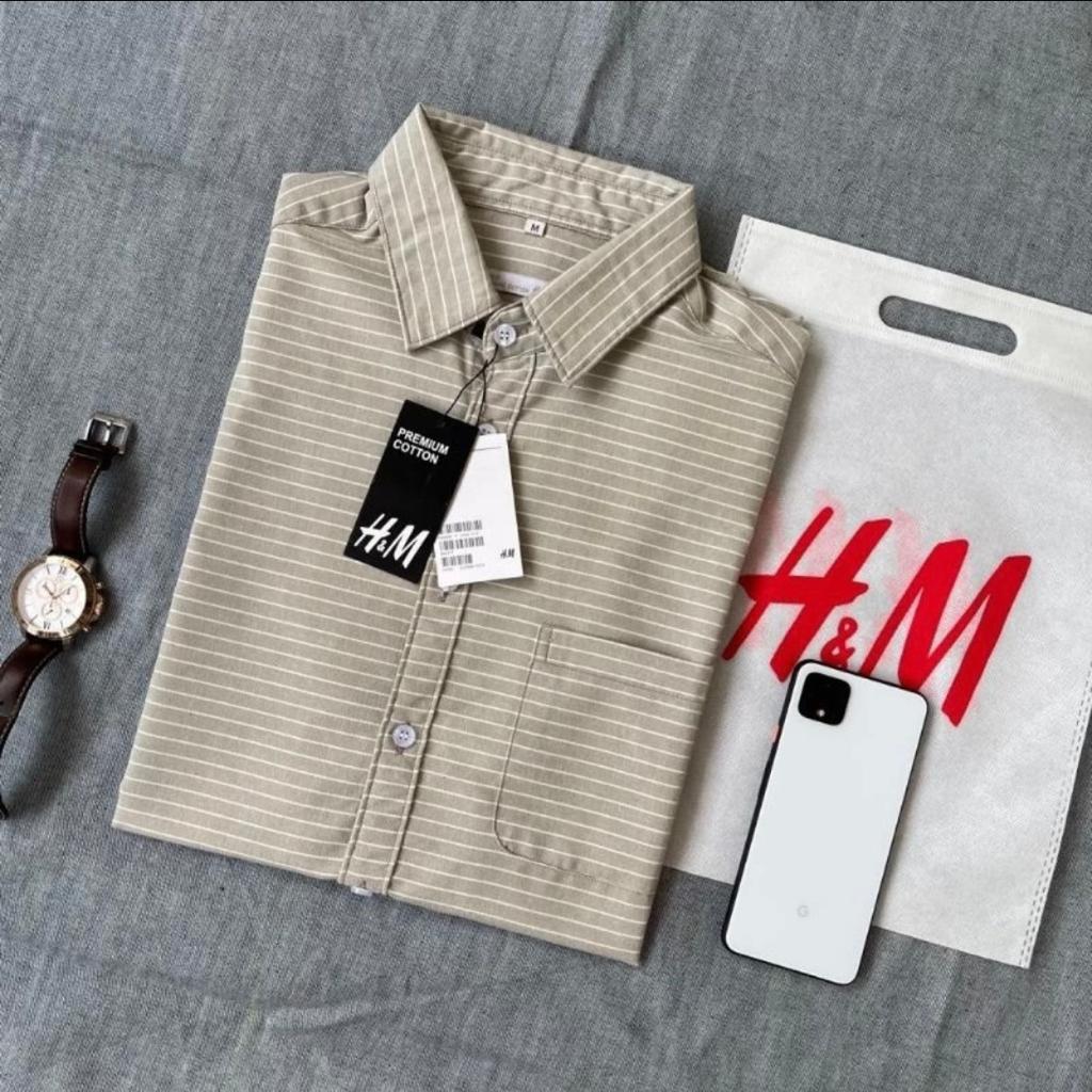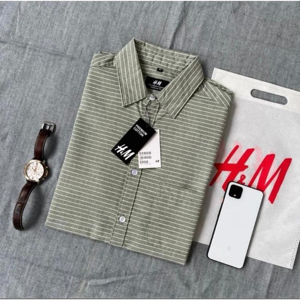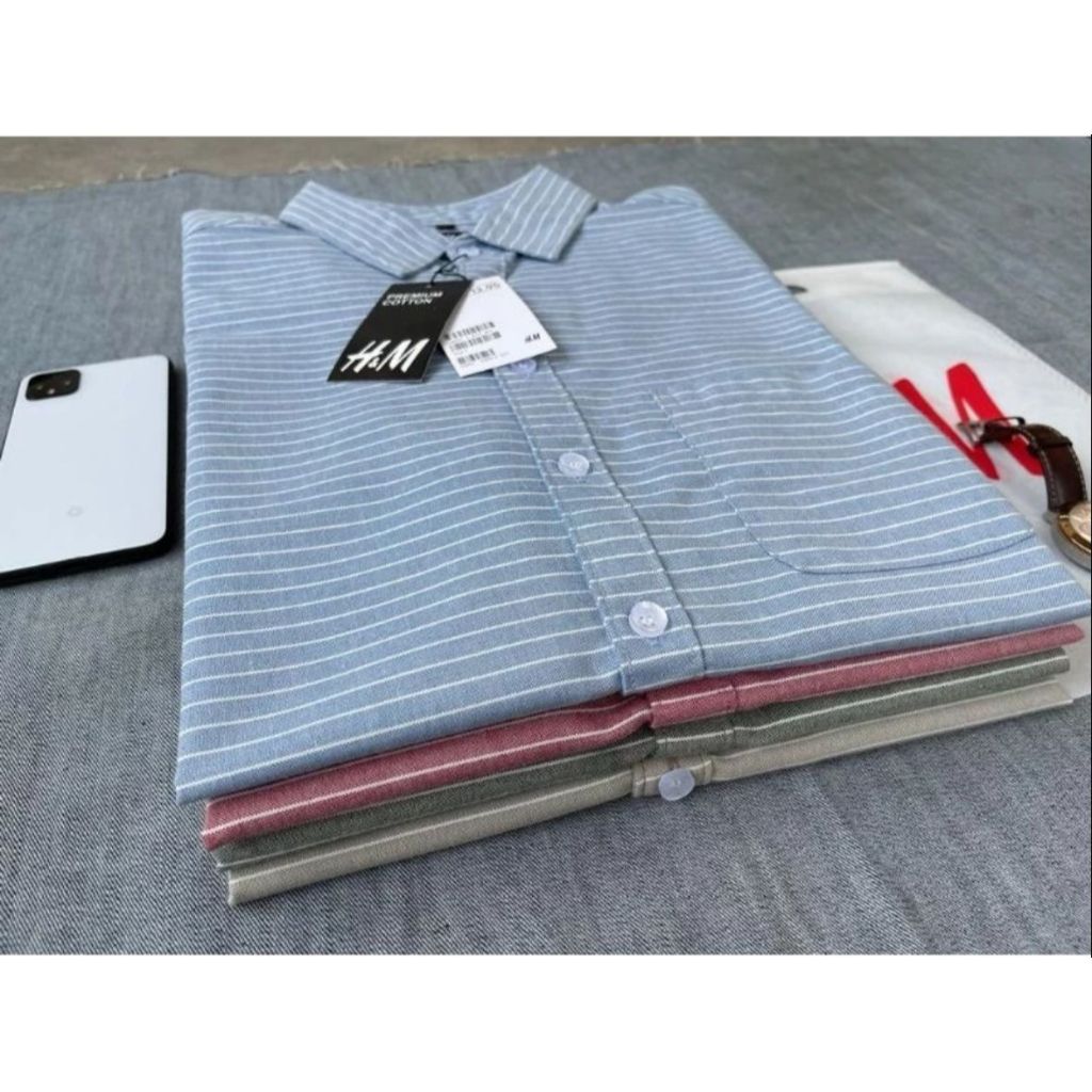 KEMEJA LENGAN PENDEK SALUR GARIS HM PRIA | KEMEJA KERAH PRIA CATTON OXSFORD | KEMEJA CASUAL SLIM SANTAI PRIA