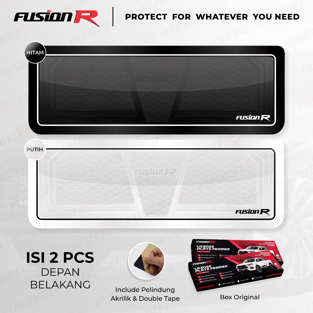 PROMO FUSION R Tempat Dudukan Tatakan Plat Nomor Mobil Hitam Akrilik Mika Frame SET Depan Belakang Premium