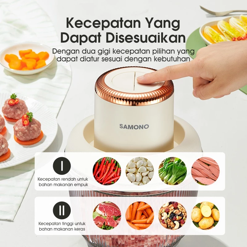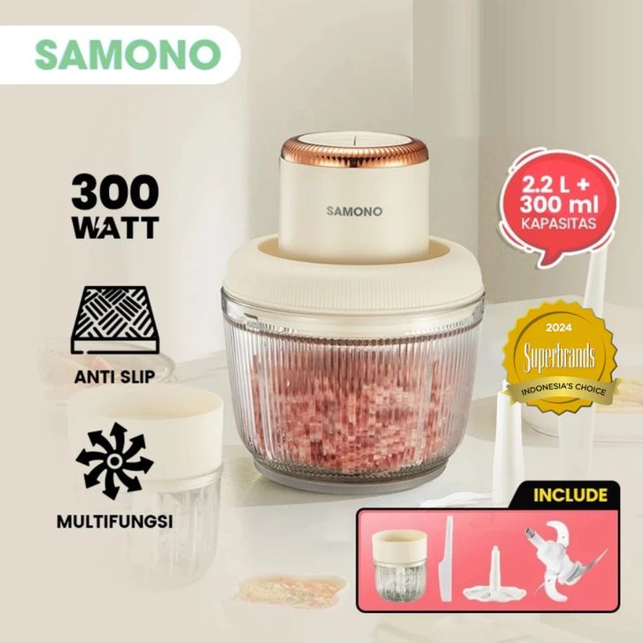 SAMONO Chopper 2in1 Kapasitas 2,2L dan 300ml Multifungsi 300 Watt Pengggiling Daging SW-CD300
