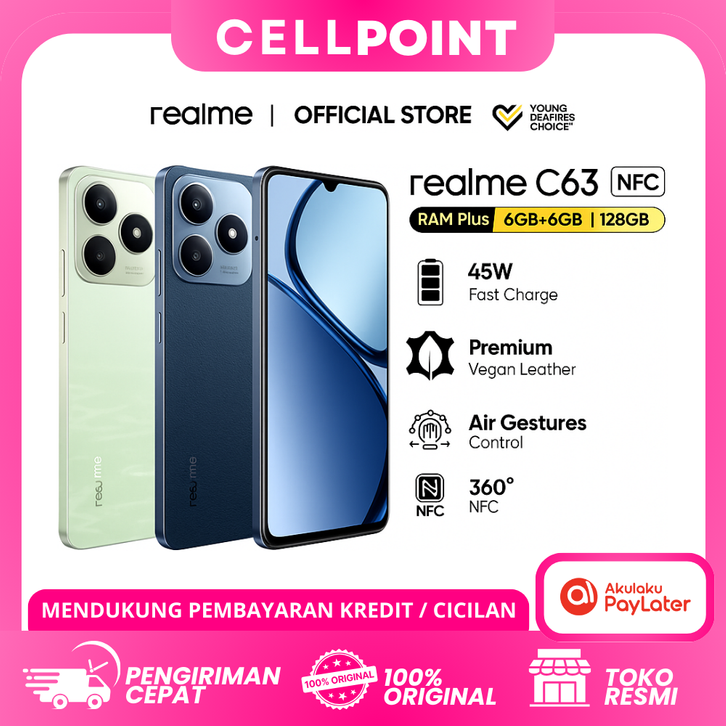 REALME C63 6GB+6GB 128GB 45W FAST CHARGE AIR GESTURES CONTROL TÜV CERTIFICATION 7.74MM ULTRA SLIM NFC ORIGINAL OFFICIAL