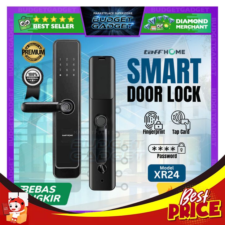 HEMAT SMART DOOR LOCK GAGANG PINTU RUMAH KUNCI ELEKTRIK FINGERPRINT CARD ALARM TAFFHOME SMART DOOR HOME - XR24