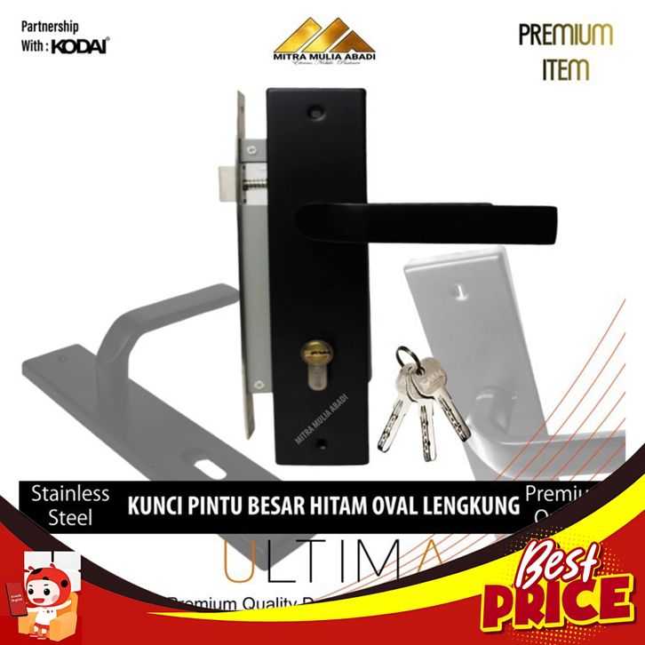 HEMAT KUNCI PINTU BESAR HITAM ULTIMA BY KODAI | GAGANG LENGKUNG | FULL SET