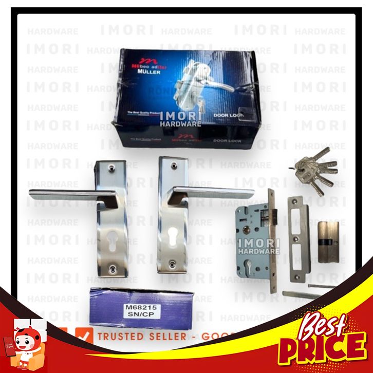 HEMAT MULLER GAGANG HANDLE PEGANGAN KUNCI PINTU RUMAH DOOR SET STAINLESS M - 68215