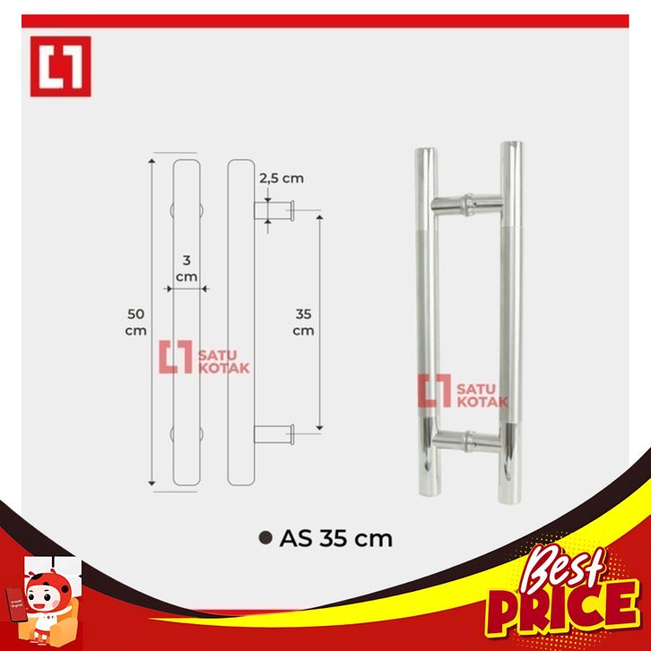 HEMAT GAGANG PULL HANDLE PINTU KACA KAYU STAINLESS / BLACK AS 30/40CM WELDOM - AS 35CM, ST (SATIN/DOFF)