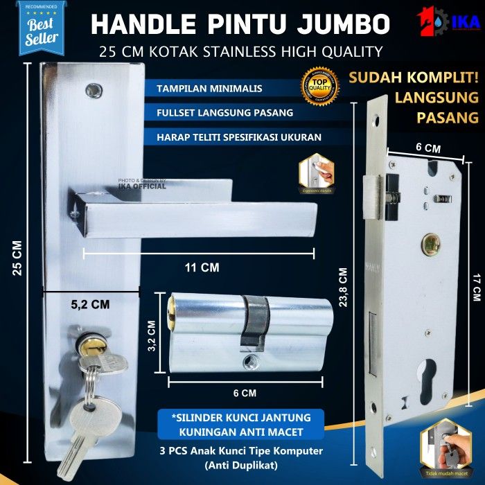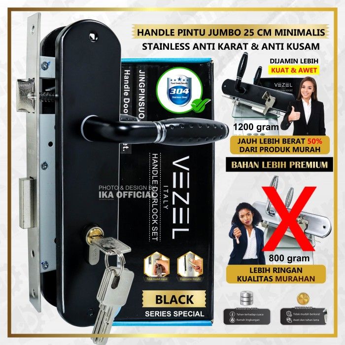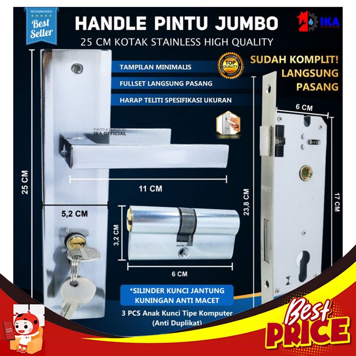 HEMAT HANDLE + KUNCI PINTU 25CM KOMPLIT ASLI PREMIUM / GAGANG TARIKAN RMH - WANLY 8517-25CM