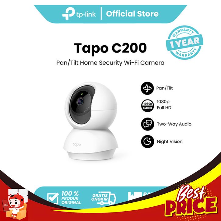 HEMAT TP-LINK TAPO C200 WI-FI CCTV CAMERA/IP CAM PAN/TILT 360° KAMERA - C200, PUTIH