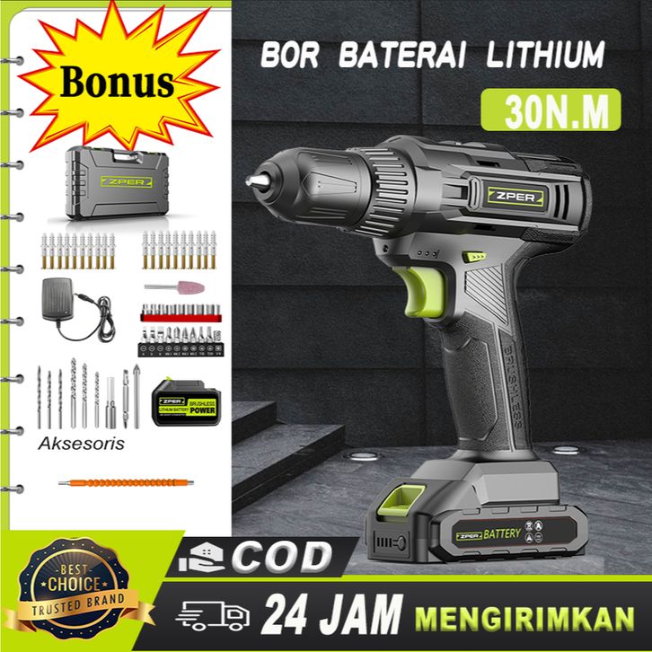 [Star] Mesin Bor ZPER listrik murah bor tangan baterai besi tembok Beton 21V Bor Baterai Lithium Brushless Terbaru