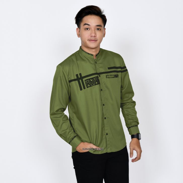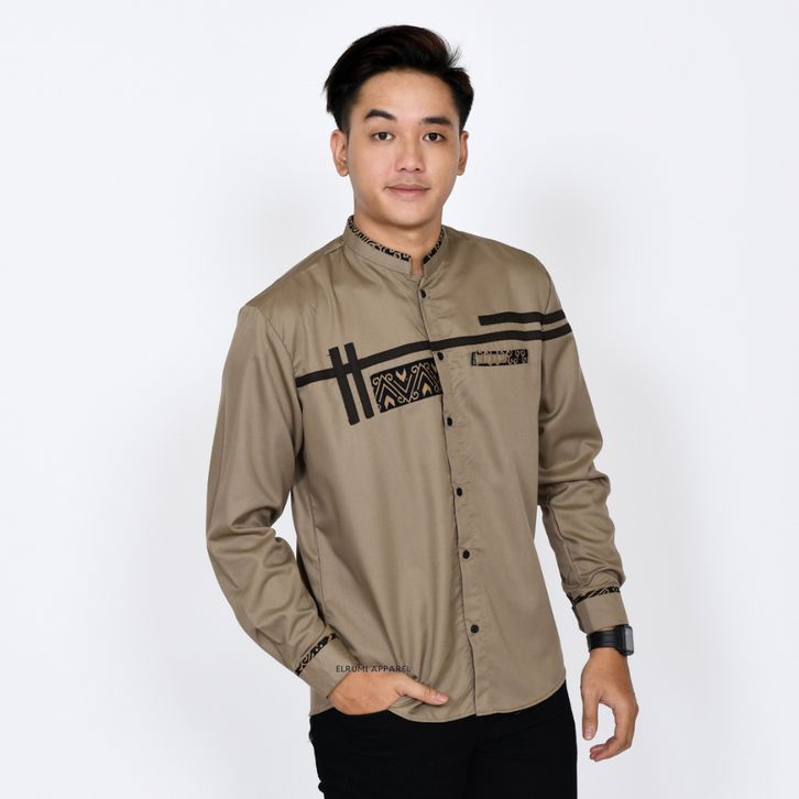 Baju Koko Pria Lengan Panjang Coklat Batik Slim Fit Motif Zoled Original Elrumi