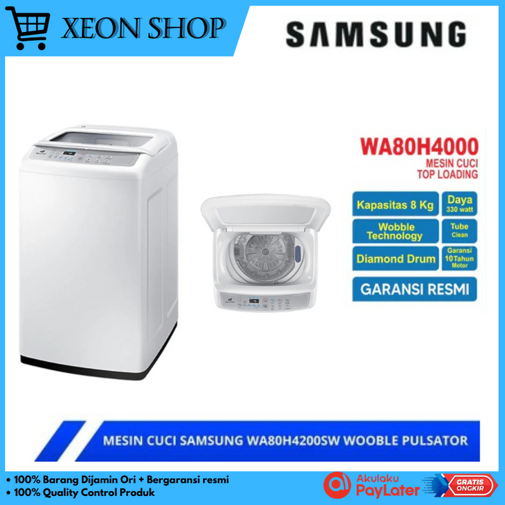 MESIN CUCI 1 TABUNG SAMSUNG WA 80H4000 TOP LOADING 8 KG DIAMOND DRUM