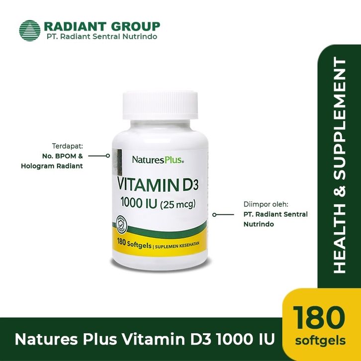 VITAMIN D NATURES PLUS VITAMIN D3 1000 IU ISI 180 SOFTGELS SUPLEMEN MENJAGA KEKEBALAN IMUN TUBUH & KESEHATAN TULANG OTOT