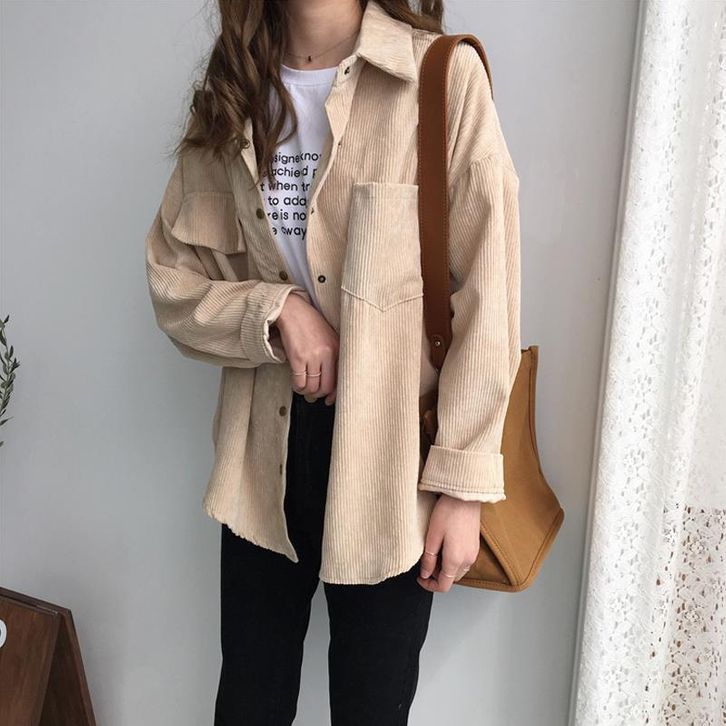 Atasan Wanita Kekinian Korea Kemeja Blouse Korduroi Desain Retro Shirt Oversize M-4XL - YURUMA