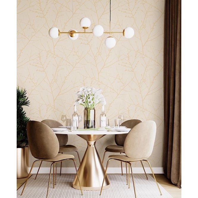 Wallpaper Dinding Ranting Dahan Kayu Pohon Metalik Floral Putih Silver Abu Hijau Cream Elegan