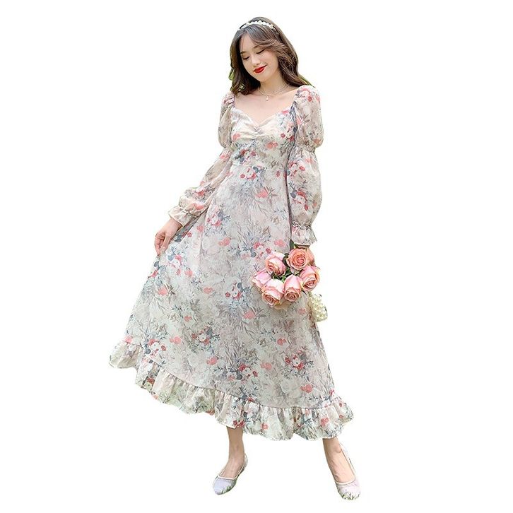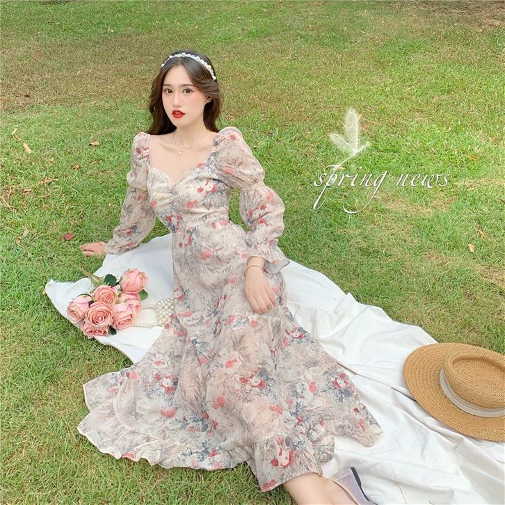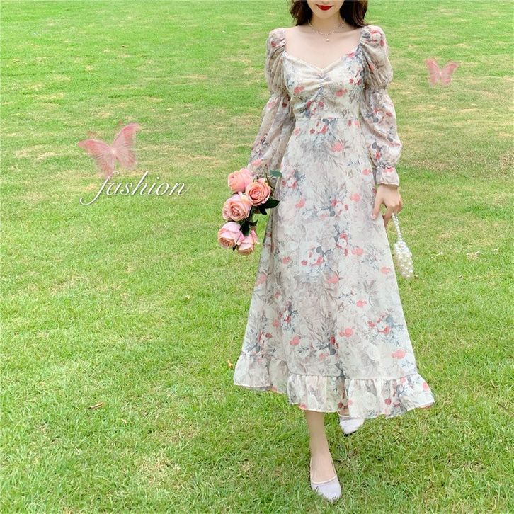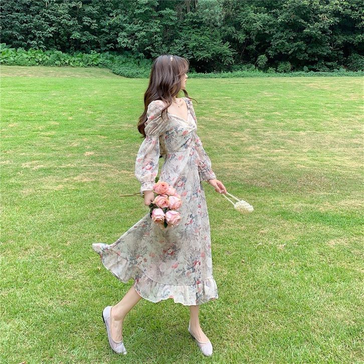 D0473 TIFFANY KOREAN STYLE FLORAL VINTAGE MIDI DRESS PANTAI HIJAB FRIENDLY