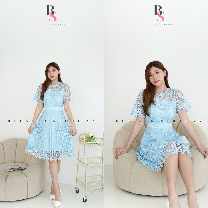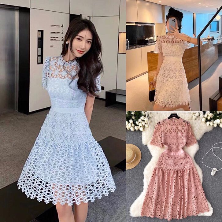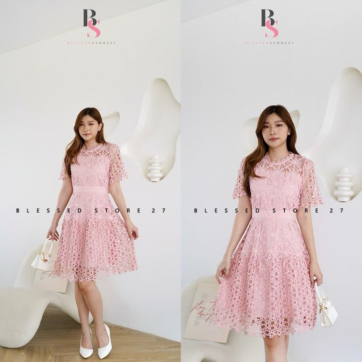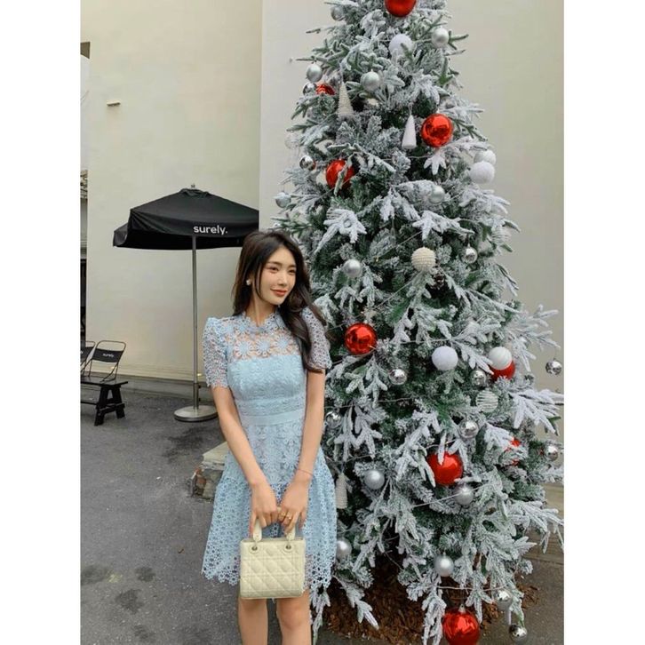 D1459 BRUNO KOREAN STYLE CROCHET BROCADE VINTAGE MIDI DRESS PESTA NATAL CHRISTMAS