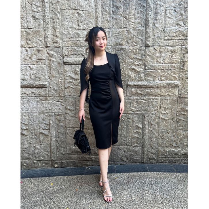 ELEVENCLOTHING - Sienna Midi Dress Simple Polos Premium Ala Korea Dress Kondangan Simple - ECR 1138