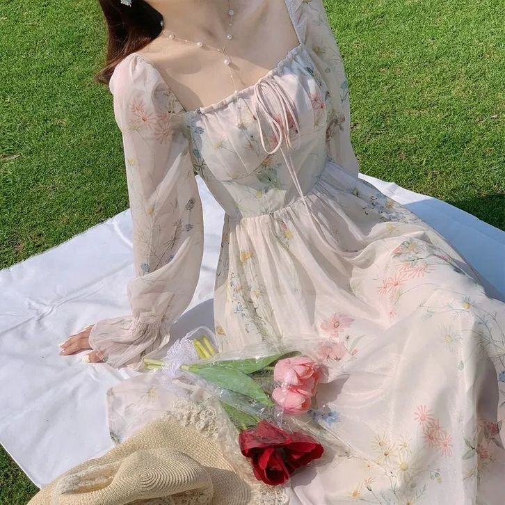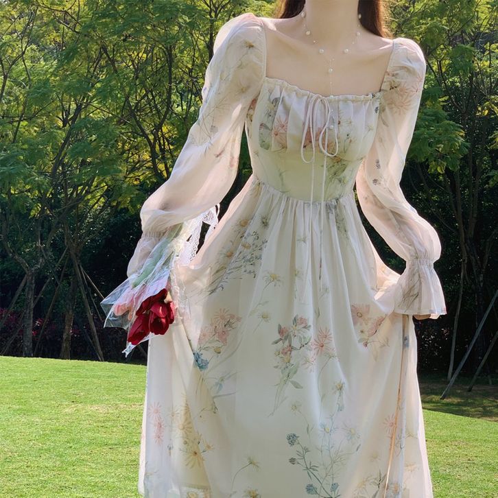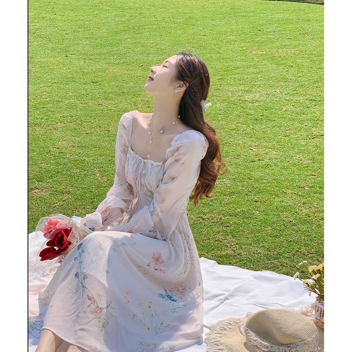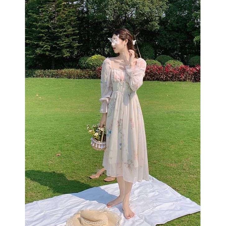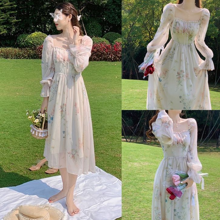 D1367 MARLA KOREAN STYLE FLORAL VINTAGE MIDI DRESS PANTAI PRINCESS LENGAN PANJANG GARDEN