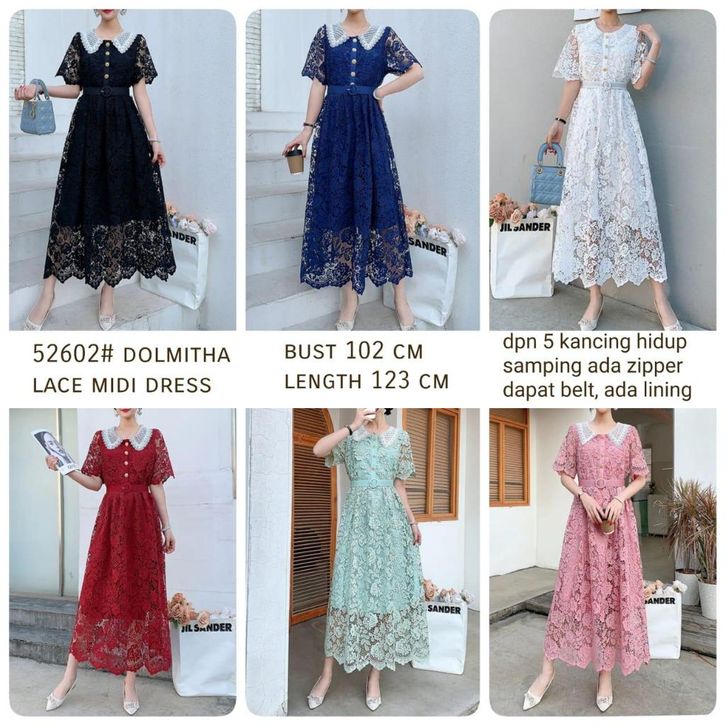 SALE MURAH DRESS 52602 3M THREE M TM DOLMITHA LACE MIDI DRES KOREA KOREAN Fashion HARGA GROSIR