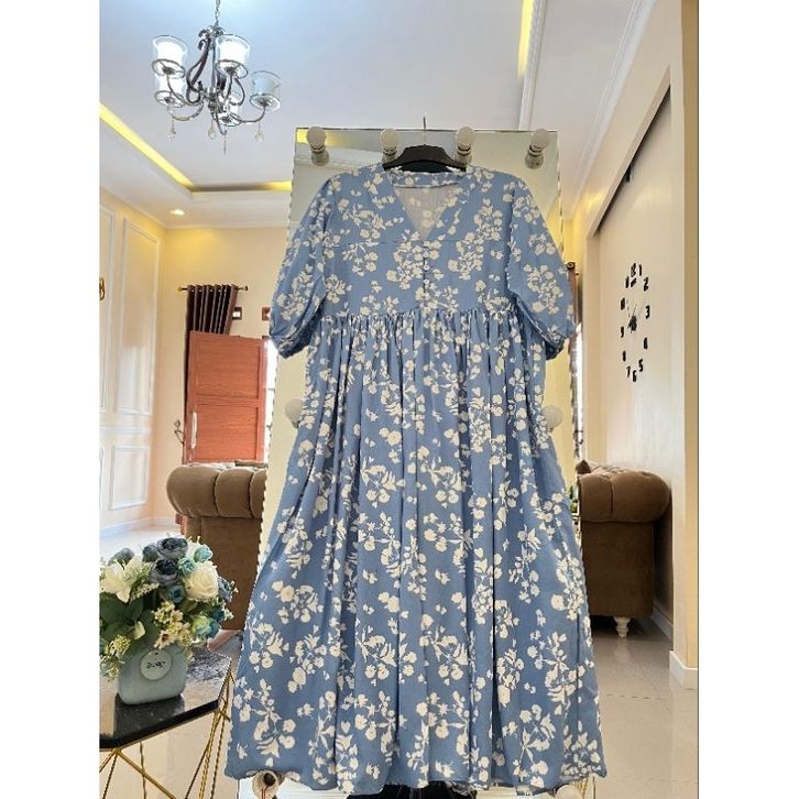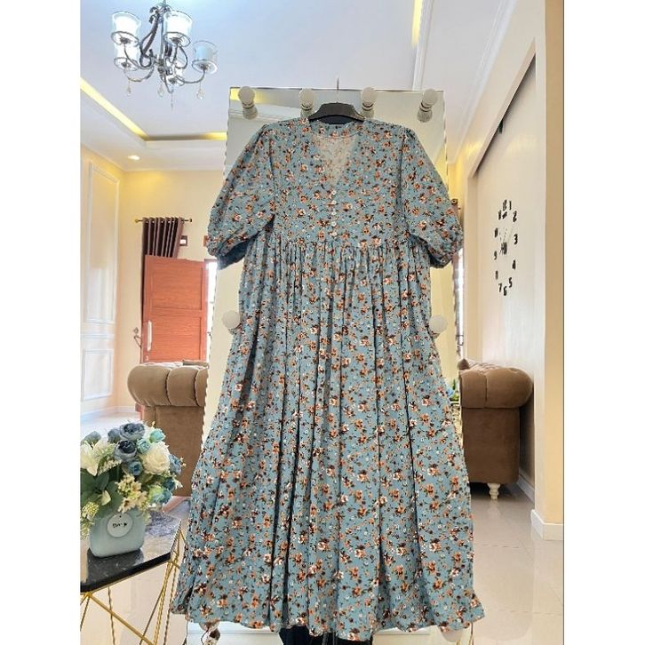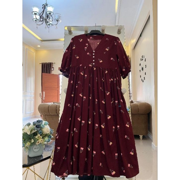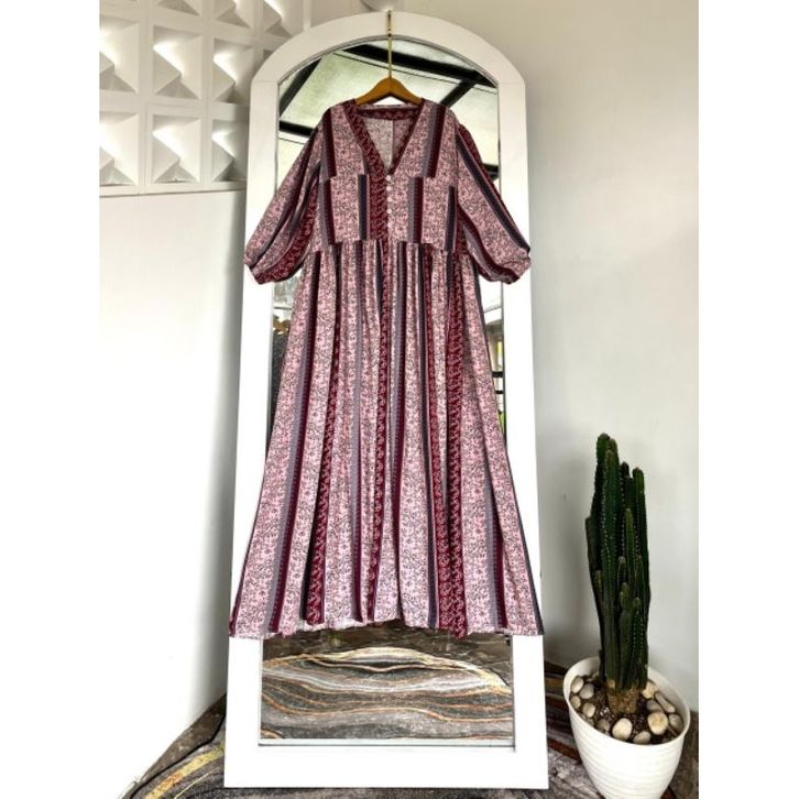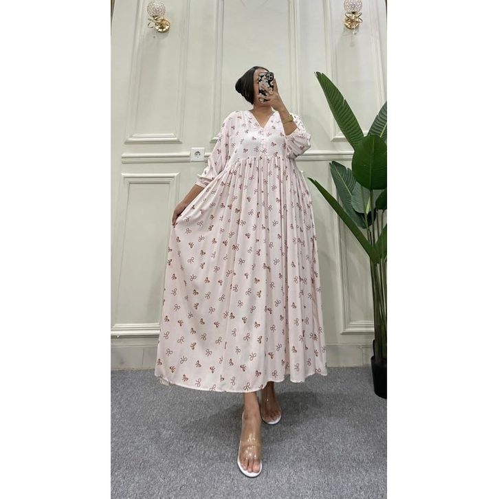 Tiara Midi Dress kancing Mat Rayon Premium READY STOCK