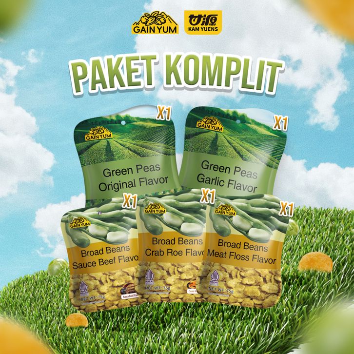 PROMO RAMADHAN [ PAKET KOMPLIT ] GAIN YUM - ALL VARIAN KACANG POLONG DAN KACANG KORO UKURAN 75G
