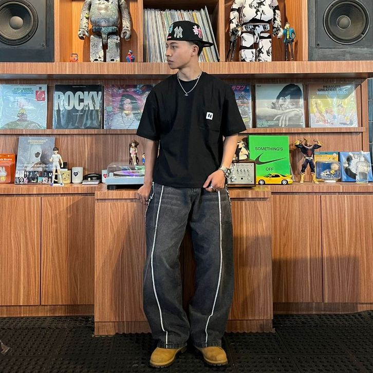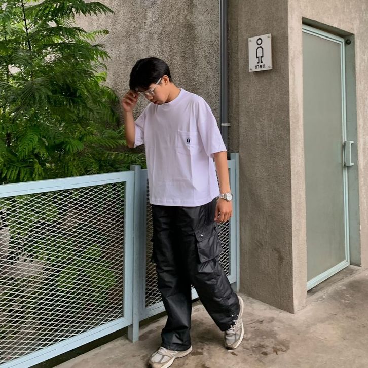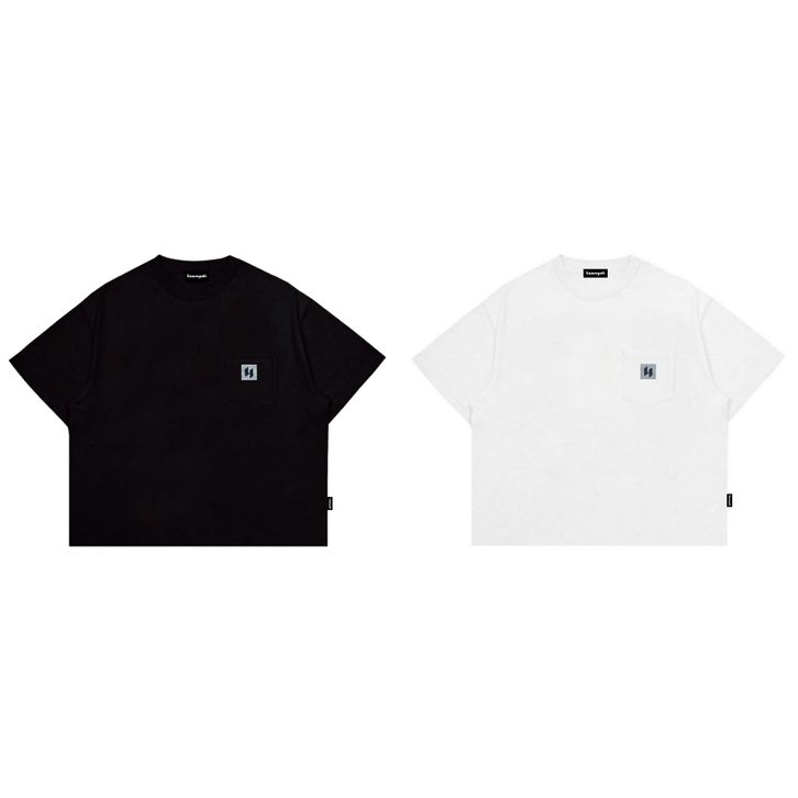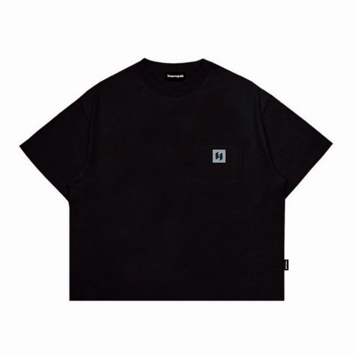 QOTH 'Pocket Oversized Boxy Crop Bold Neck T shirt' Kaos Polos Basic Oversize Saku Kerah Tebal 20s | Q-101-124