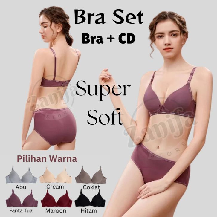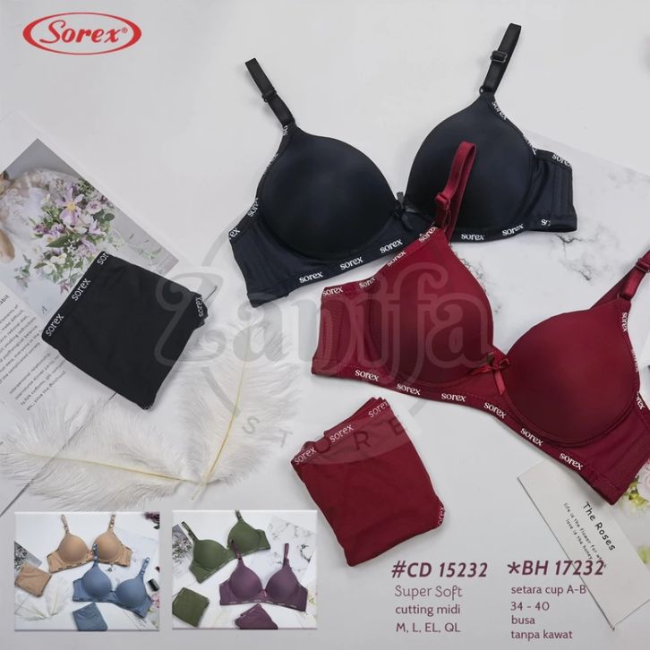 SOREX Bra Set Super Soft Tanpa Kawat BRA + CD Sexy Cup A-B Busa Sedang #32 17232